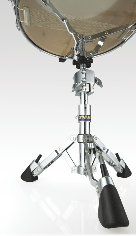 - 従来よりも2インチ低いセッティングが可能となり、深胴スネアにも対応します。(高さ調整幅 41~57cm) また、激しいプレイにも接地面でしっかりとグリップする大型ラバー脚を採用するとともに、ワンタッチで出し入れ出来るノック式スパイクを内蔵したことにより、操作性の向上と高い安定性を実現しました。